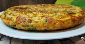 Tenía guarda en la nevera un poco de arroz blanco que hice para rellenar unos calamares, quería hacer una ensalada de arroz con él. Pero anoche sin pensarlo mucho me dio por hacer una tortilla con el arroz y algunos ingredientes más que tenía en la nevera. Un plato ideal para tomar con una cerveza mientras vemos los deportes por la tele.