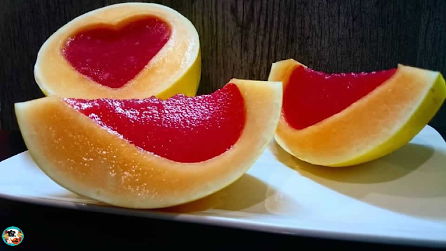 Consejo; rocía con el jugo del limón la fruta para que se oxide. Si quieres que la gelatina se te quede más firme, añade 2 hojas más de gelatina. El postre no requiere azúcar, la fruta si esta madura le aporta mucho dulzor. La receta la puedes hacer a la inversa, rellenar la sandía con el melón. También puedes utilizar otras frutas para hacer rellenar el corazón del melón; fresas, cerezas, frambuesas, kiwi, papaya o leche de coco. Con la pulpa de la fruta que hemos extraído del melón puedes preparar un salmorejo.